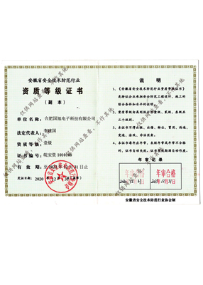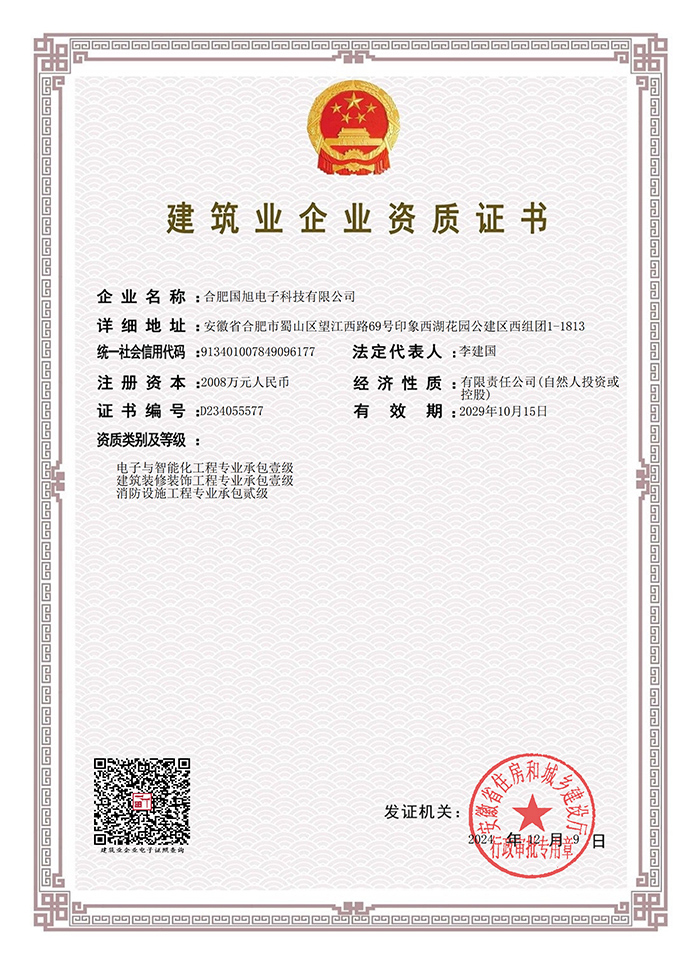 公司現(xiàn)已獲得承裝(修、試)電力設(shè)施許可證、電子與智能化工程專業(yè)承包壹級資質(zhì)、建筑裝修裝飾工程專業(yè)承包壹級資質(zhì)、消防設(shè)施工程專業(yè)承包貳級、安全技術(shù)防范行業(yè)壹級資質(zhì)、雷電防護(hù)裝置檢測資質(zhì)證乙級資質(zhì)、安全生產(chǎn)許可證、通過ISO9001:2015質(zhì)量管理體系認(rèn)證、ISO14001:2015環(huán)境管理體系認(rèn)證、OHSAS18001:2007職業(yè)健康安全管理體系認(rèn)證等榮譽。我們還將進(jìn)一步努力,爭取贏得更多的榮譽。